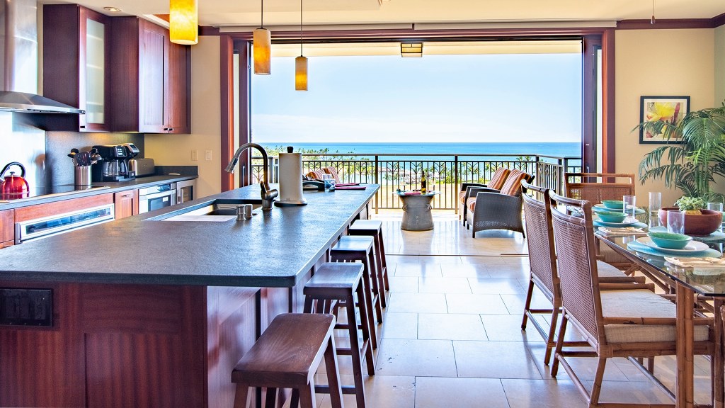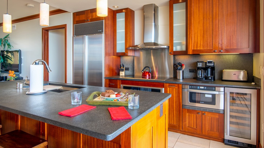 キッチンはハワイの有名シェフ、ロイ・ヤマグチシェフ(レストランRoy’s)がデザインし、最先端のシグネチャー・キッチン、サブゼロ社およびウルフ社の高級キッチン家電、太平洋を見渡せる御影石のカウンターを備えています。料理好きの方も満足の設備で、カジュアルな食事から贅沢なディナーまで、思いのままに腕を振るうことができます。