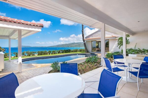 ハワイカイの高台、マリナーズリッジの中腹に建ち、美しい太平洋とココヘッドの緑の眺望がすばらしい5ベッドルームからなる大きな邸宅、「スカイ・ブリーズ」 ロコたちしか通らない 袋小路に建っているので、隠れ家のようでプライバシーが守られ、静かに過...