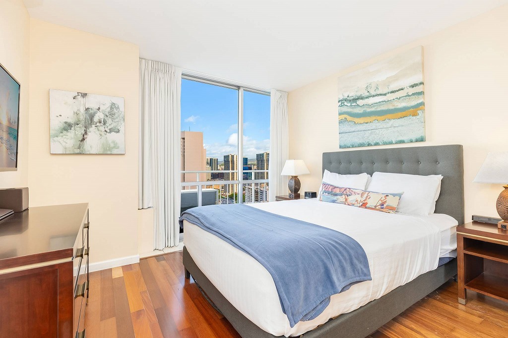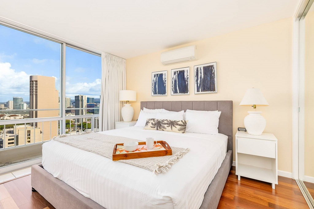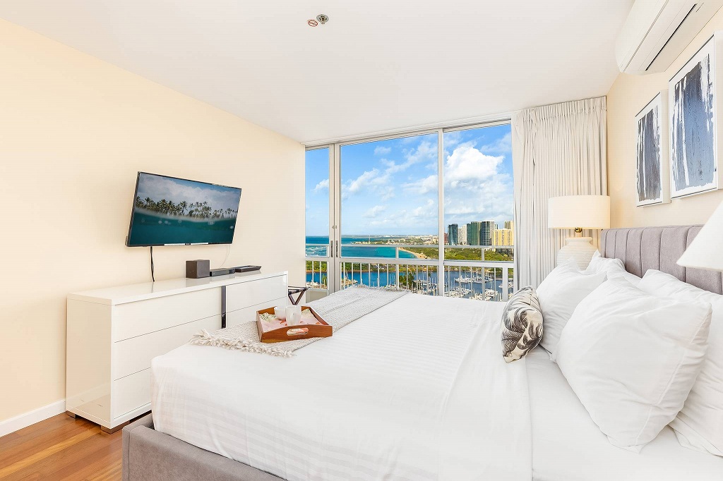 ワイキキの象徴的コンドミニアム、ビーチとヨットハーバーを望む抜群の立地のオーシャンフロントに建つイリカイ・ホテル。その26階の高層階にあるこの2ベッドルーム・ペントハウスは、最上階からイリカイのマリーナとオーシャンビューを望むユニットです。広々としたリビングに、フルキッチン、室内洗濯機・乾燥機、2つの寝室にはハンドシャワー付きのバスルームが備わっています。毎週金曜日に上がるヒルトンの花火も鑑賞できます。