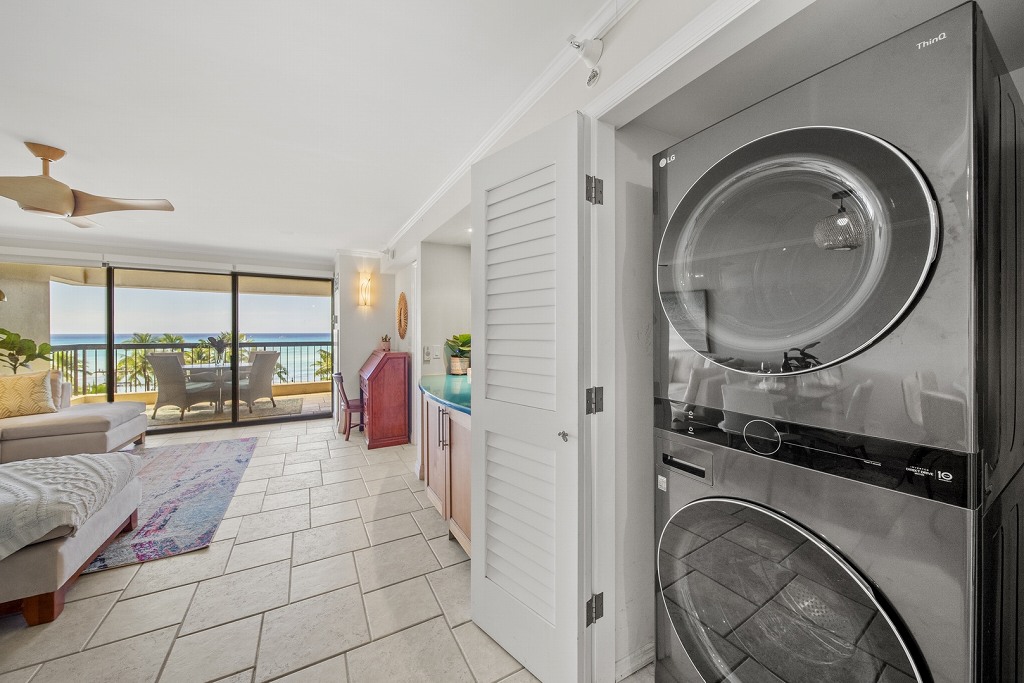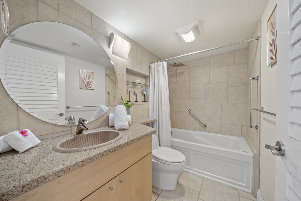 この部屋はモダンなキッチンからダイニングエリア、リビングエリアへと続く心地よい流れを生かしたオープンコンセプトの間取り。設備の整ったキッチンには、冷蔵庫、コンロ、オーブン、食器洗浄機、電子レンジが備わっており、素晴らしい海の景色を眺めながら、手軽に食事の準備ができます。リビングエリアとメインベッドルームの両方からアクセスできるプライベートラナイからは、パノラマのオーシャンビューをお楽しみいただけます。穏やかな海風とワイキキの絶景に身を委ね、目覚めのコーヒー、または夕暮れのビールを一杯をいただくのは格別でしょう。メインベッドルームには、クローゼットスペースとウォークインシャワー、ダブルシンクを備えた専用バスルームが備わっています。ゲストベッドルームも同様に居心地が良く、こちらのバスルームはバスタブ付き。一日の観光の後は、ゆったりと浸かって疲れを癒すことができます。リビングでは、クイーンサイズのソファベッドが利用できます。