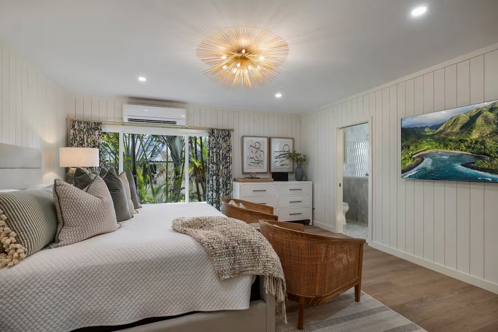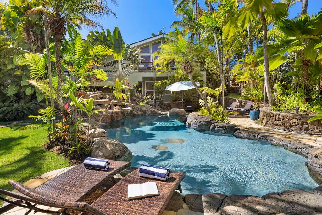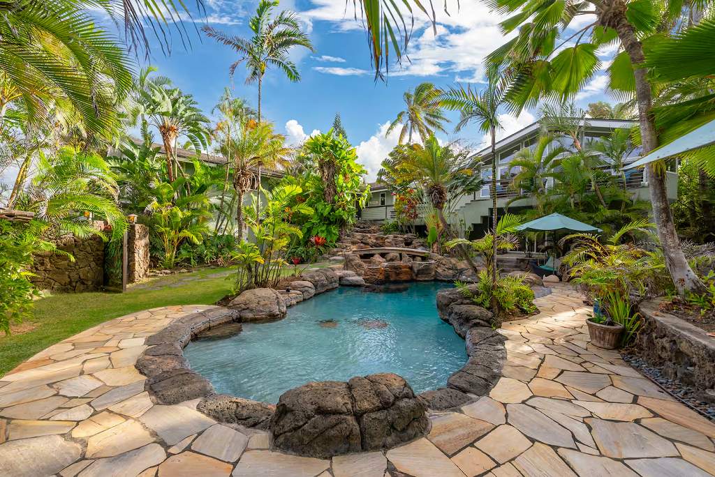 世界的に有名なカイルア・ビーチからすぐの場所に位置する、新しく改装された6ベッドルームのトロピカル・エステート。カイルアの柔らかな白い砂浜と、ターコイズブルーの海までわずか徒歩1分の特別なロケーションで、高級リゾートのようなプライバシー、快適さ、アメニティを独り占めできます。ビーチサイドの住宅街の専用レーンに建ち、緑豊かな庭園に囲まれた静かな環境の中、プライベートプールやジャグジー、アウトドアでのBBQダイニングなど、まさに思い描いていた優雅な「隠れ家的」別荘生活を満喫できるでしょう。ビーチサイドの至福が待つ、ここだけの夢の休暇を手に入れてください。