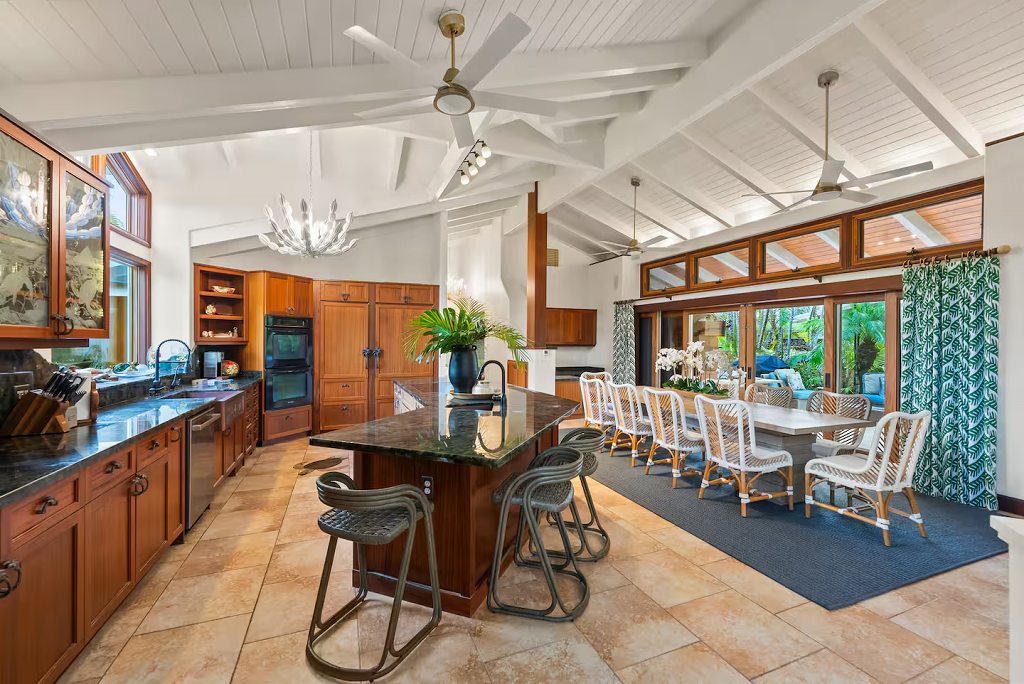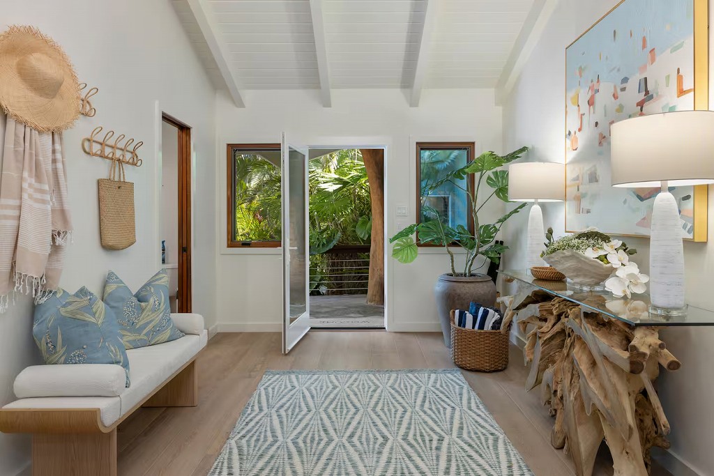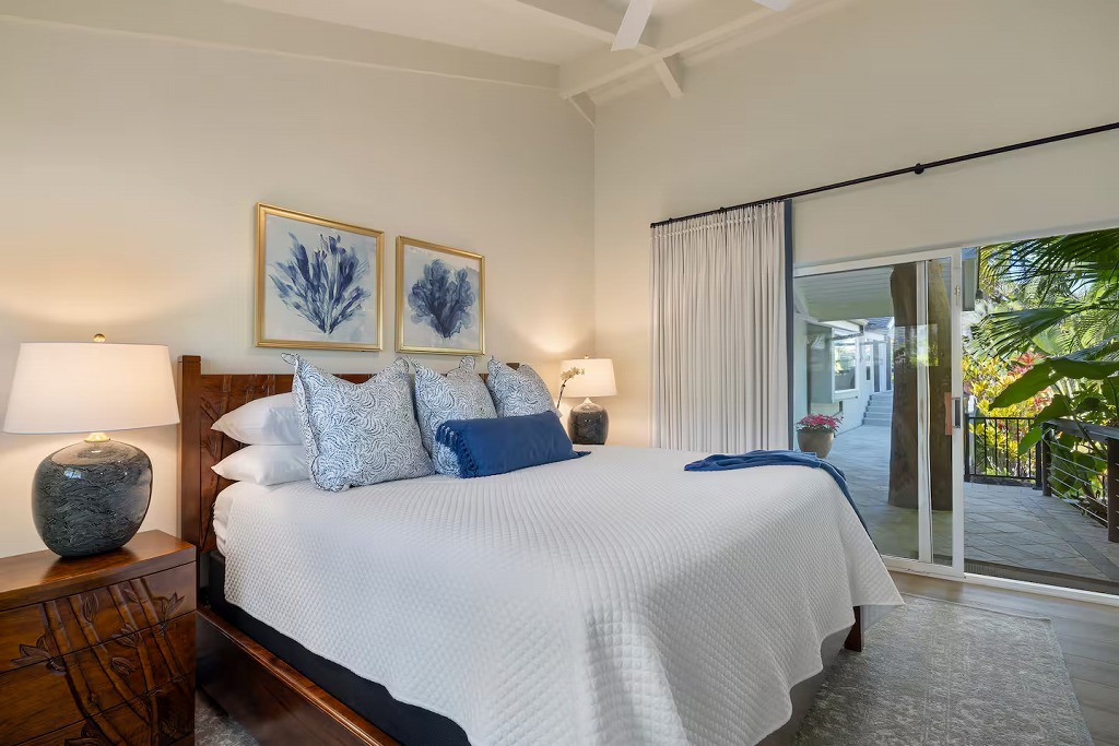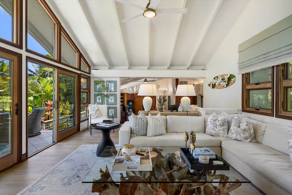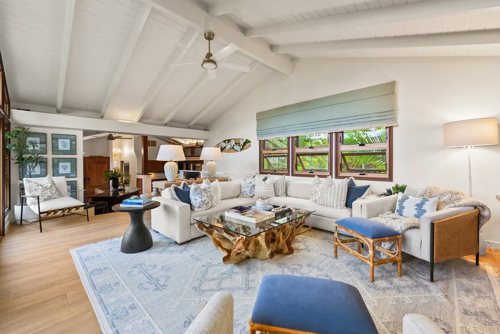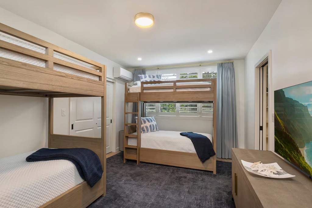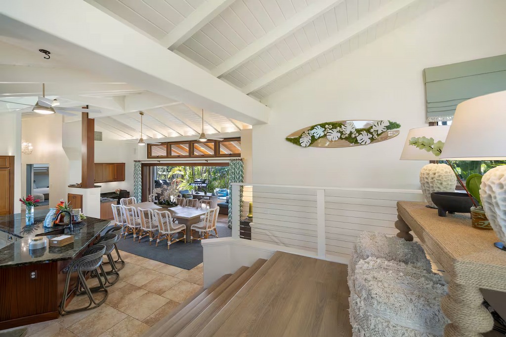 メインハウスとツリーハウス(ゲストハウス)からなる室内は、広々としたフレキシブルな間取りに、6つのベッドルーム、5.5のバスルーム、3つのプライベート・エントランスを誇り、それぞれのプライバシーを確保したいグループや多世代の家族に最適な物件です。1952年に建てられたのち、受賞歴のあるデザイナー会社によって全面的に、そして豪華に改装されました。各部屋にはエアコンが備わり、リビングの大型テレビ、超高速インターネット、シェフ仕様のキッチンなど、快適さとエンタ-テイメントの両立が図られています。ビーチへのお出かけ用に、ビーチチェアやブギーボードなども用意され、お子様連れも楽しめるように配慮がされています。駐車スペースは3台分まで可能です。
