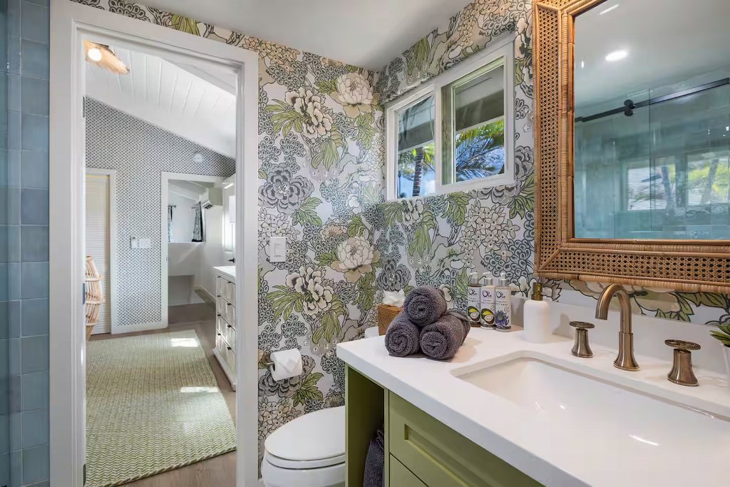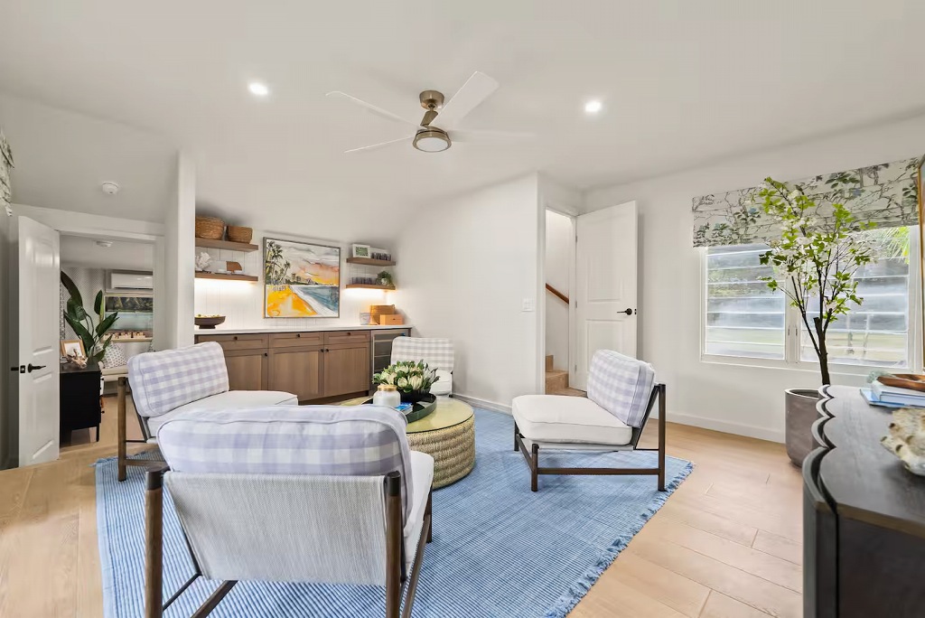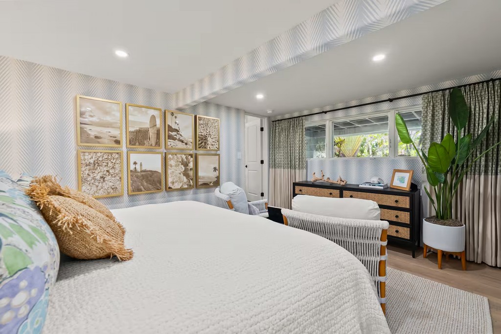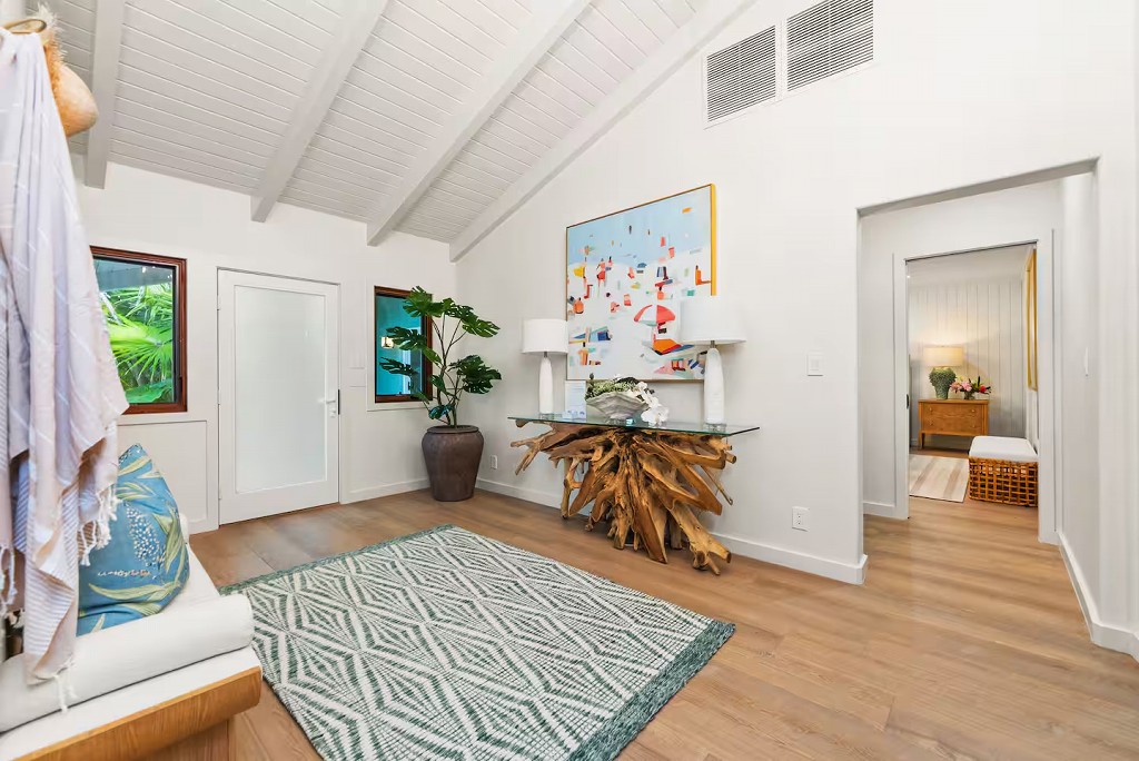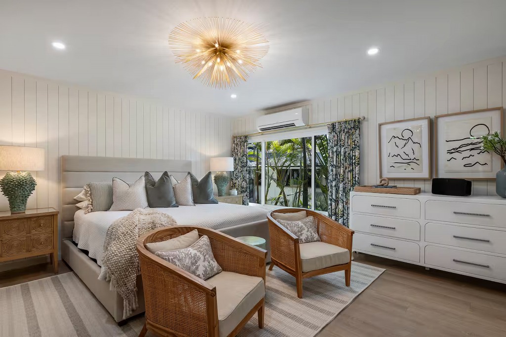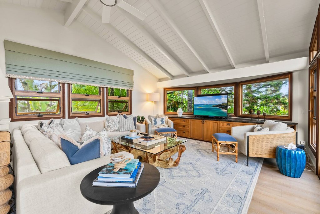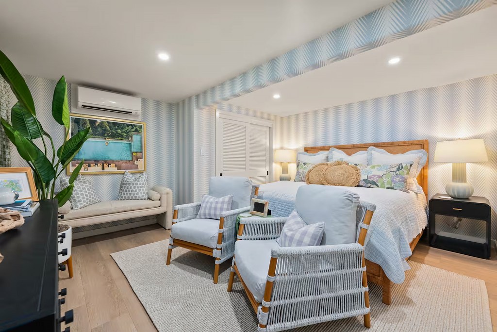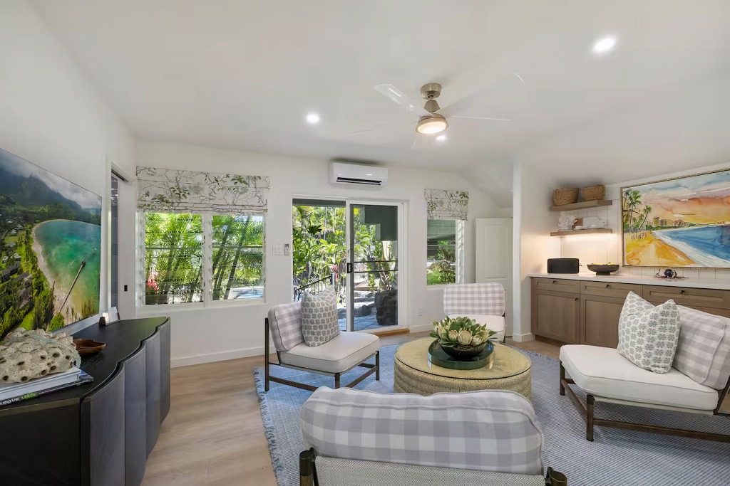 メインハウスとツリーハウス(ゲストハウス)からなる室内は、広々としたフレキシブルな間取りに、6つのベッドルーム、5.5のバスルーム、3つのプライベート・エントランスを誇り、それぞれのプライバシーを確保したいグループや多世代の家族に最適な物件です。1952年に建てられたのち、受賞歴のあるデザイナー会社によって全面的に、そして豪華に改装されました。各部屋にはエアコンが備わり、リビングの大型テレビ、超高速インターネット、シェフ仕様のキッチンなど、快適さとエンタ-テイメントの両立が図られています。ビーチへのお出かけ用に、ビーチチェアやブギーボードなども用意され、お子様連れも楽しめるように配慮がされています。駐車スペースは3台分まで可能です。